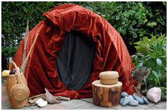 Mediteren in het donker- Meditation in the dark within a space resembling the womb. The womb is a micro version of the VOID, the great vast darkness which is the place before creation. It is described by the zen Buddhists as empty yet full; the truly fertile, holy ground from which all life is born.